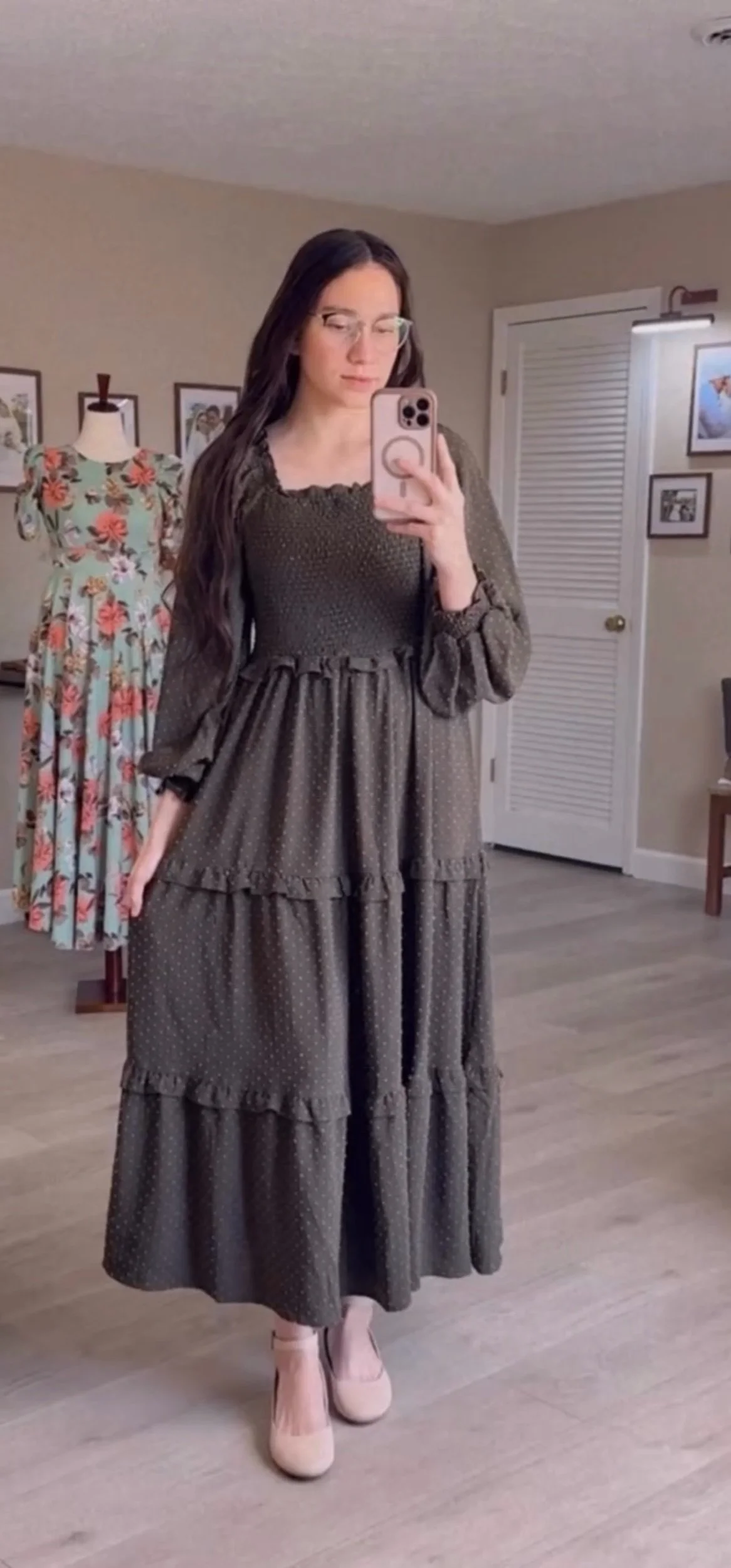 Beautiful dress perfect for fall, with long sleeves and a polka dot design